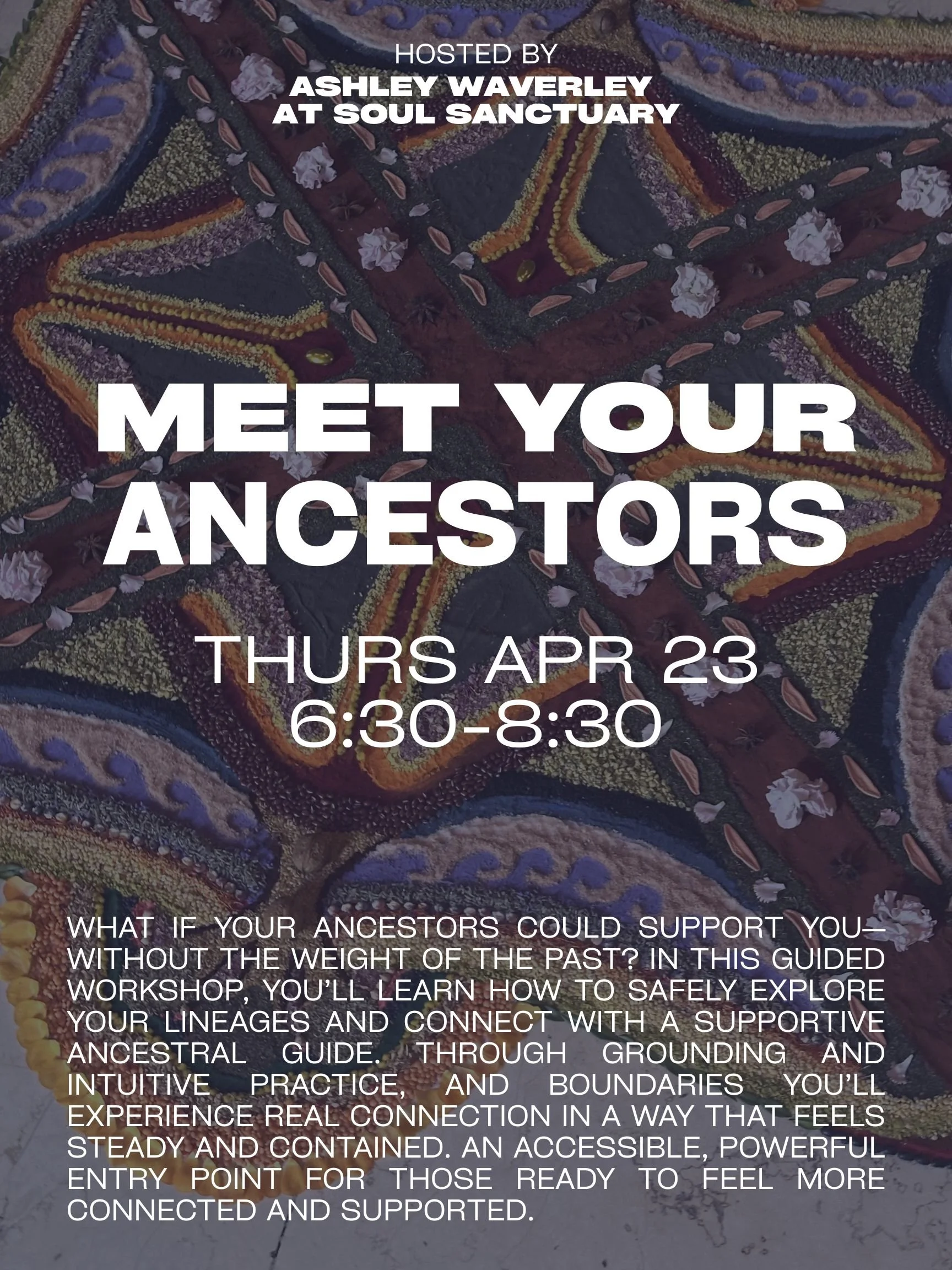 Join us tomorrow for a very special event with our friend Ashley Waverley. In this two-hour workshop, participants will learn how to assess the condition of their lineages and make first, direct contact with a well and healed ancestral guide. Through grounding, boundary-setting, and intuitive practice, you’ll experience the felt presence of ancestral support—without getting swamped by family story or the troubled dead.